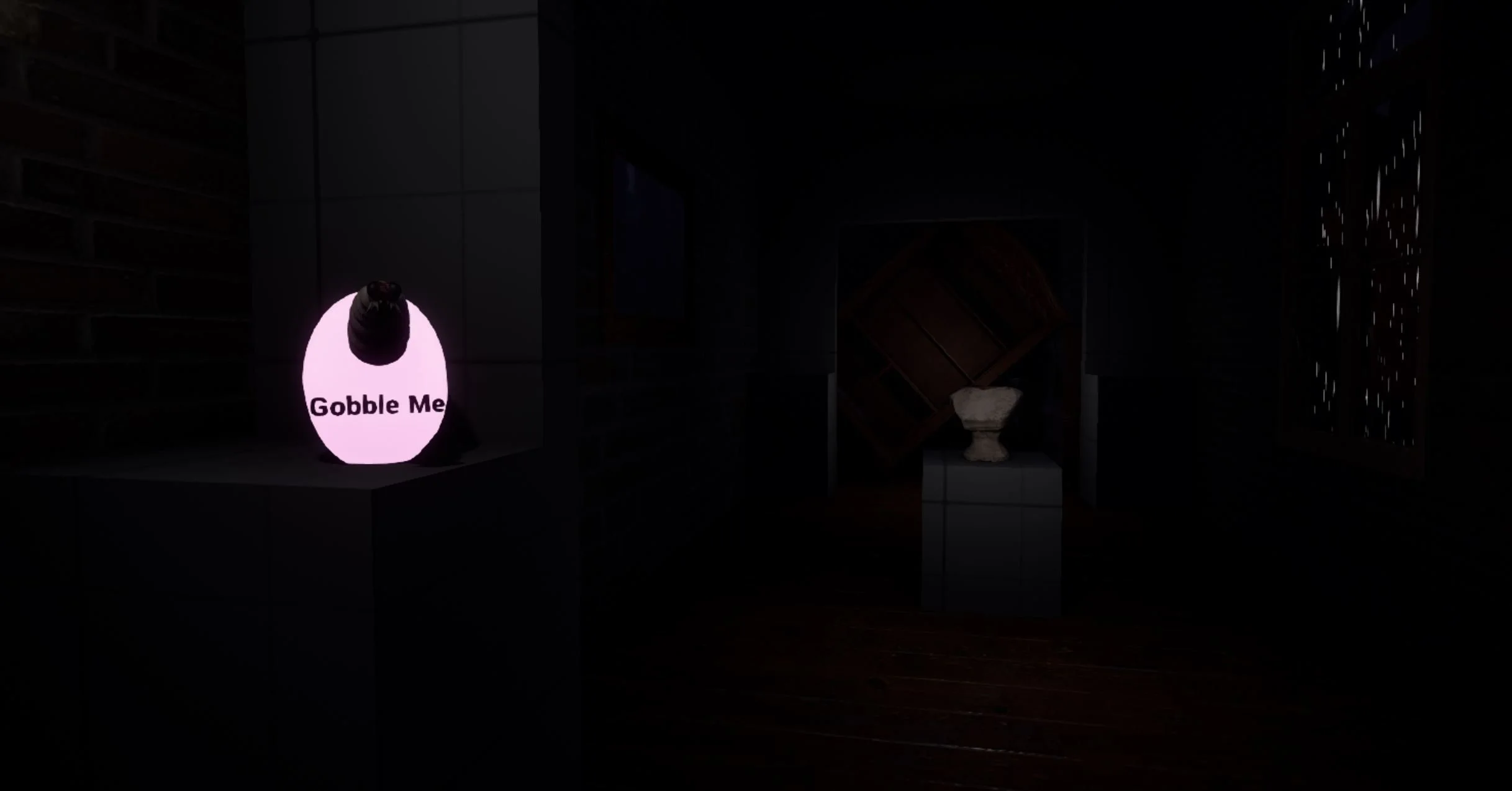 Inspired by Alice in Wonderland, the “Gobble Me” worm distorts the ‘eat me’ motif into something uncanny, a fleshy lure that fuels the light and tempts players toward the unseen.