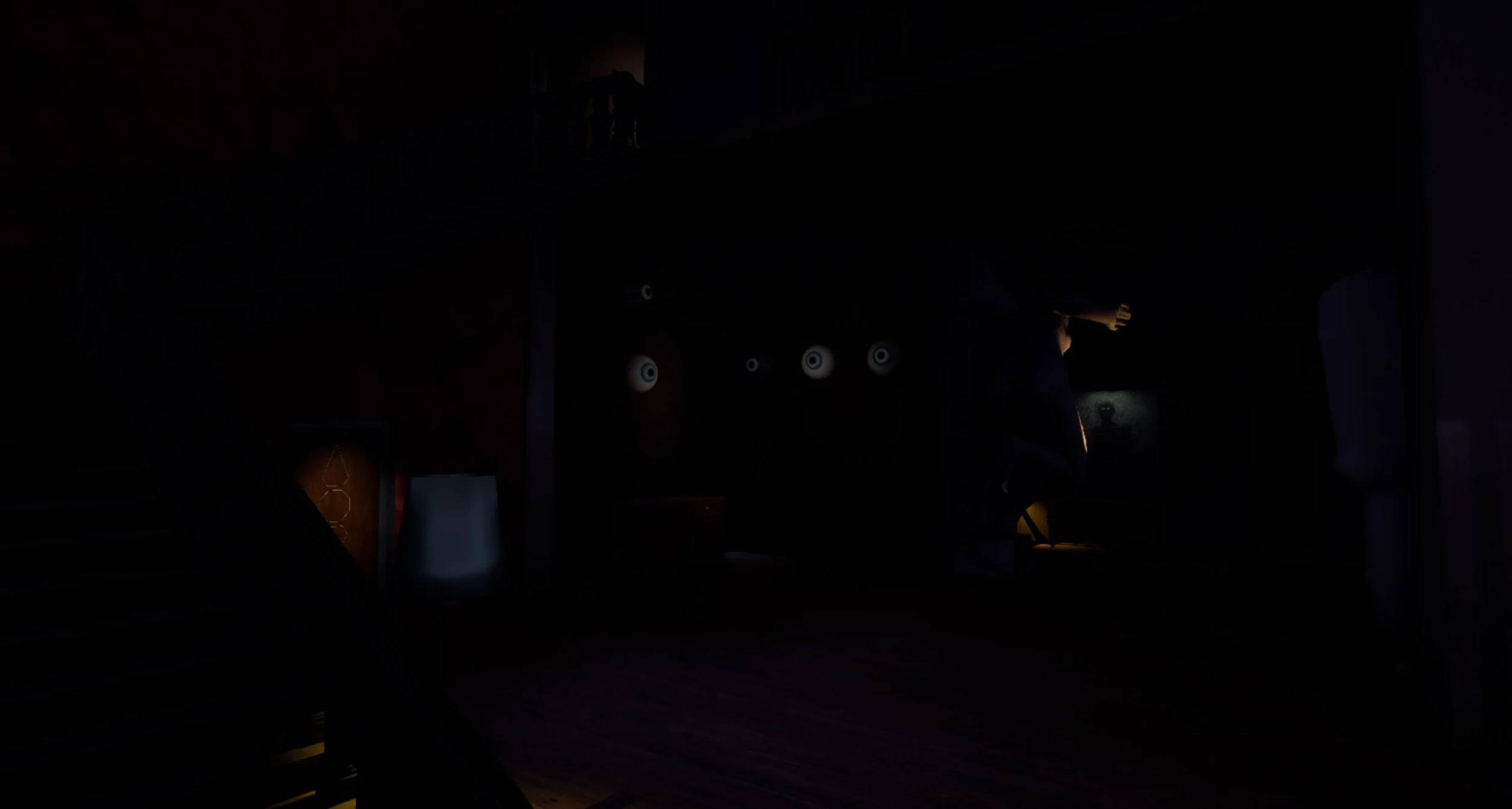 Part of the design is a feeling of persecution. Eyes that follow the player's movement are placed throughout the level to enhance this sense of unease a presence that is always watching, a constant reminder of surveillance and vulnerability.